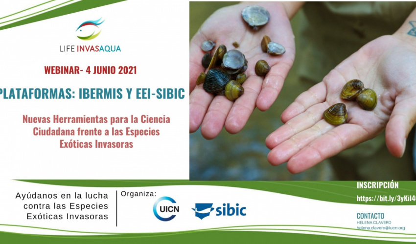 El próximo día 4 de junio de 2021 se presentarán las dos plataformas del proyecto Life Invasaqua de especies invasoras acuáticas en la Península Ibérica: la Plataforma IBERMIS y la Plataforma de la CARTA IBÉRICA DE INVASORAS (EEI-SIBIC).