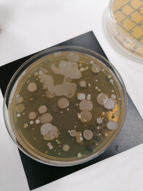 Placas que contienen los microorganismos presentes en las muestras de suelo. Imagen: MicroMundo